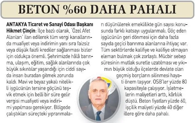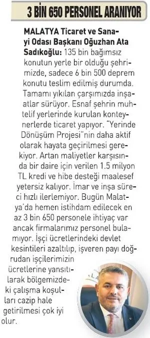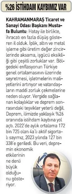 Dünya tarihinin en büyük afetlerinden biri olan 6 Şubat Kahramanmaraş depremlerinin üzerinden 17 ay geçti. 11 kenti etkileyen felaketin Türkiye ekonomisine maliyeti 104 milyar doları buldu. Toplam istihdam kaybı ise 69 bin 594 kişi olarak kayıtlara geçti. Türkiye ekonomisinin yüzde 10’unu doğrudan etkileyen deprem bölgesi, devlet-millet işbirliğiyle yeniden ayağa kalkmaya çalışıyor. SABAH, yaklaşık 1.5 yıldır yaralarını sarmaya çalışan kentlerin ticaret ve sanayi odası başkanlarının taleplerini dinledi. “Yurttaşlar, meslek odaları, STK’lar, bakanlıklar, üniversiteler ve yerel yönetimlerle birlikte bütüncül bir planlama ile memleketlerimizi yeniden ayağa kaldıralım. Mücbir sebep süresi uzatılsın” diyen başkanların taleplerini 10 ana başlık altında topladık. İşte o talepler: